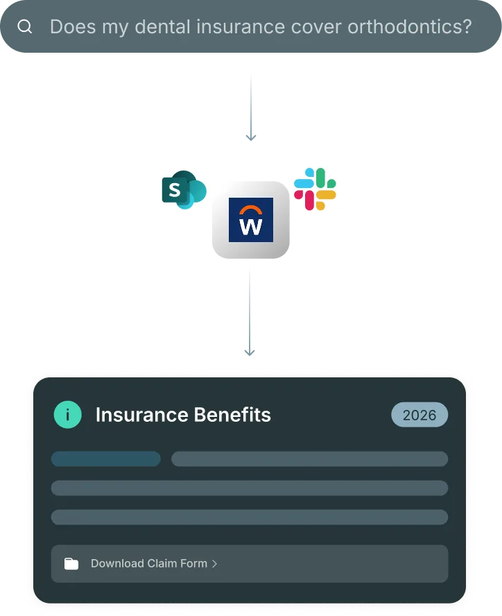 Information scattered across HR intranets, benefits portals, and internal docs returns together in a single search.
