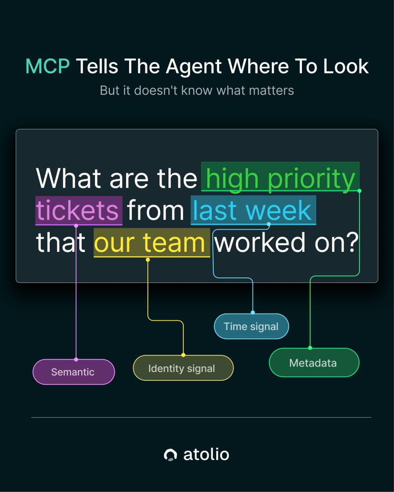Atolio’s starting premise is a reframe worth sitting with: MCPs are a poor substitute for not having a high-quality organization-wide knowledge index that can be queried in milliseconds.