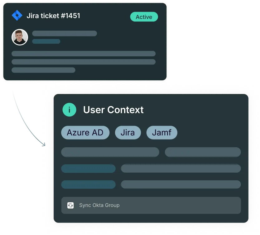 Asset data, access history, and past tickets cohere around the user, not the tool they were logged in.