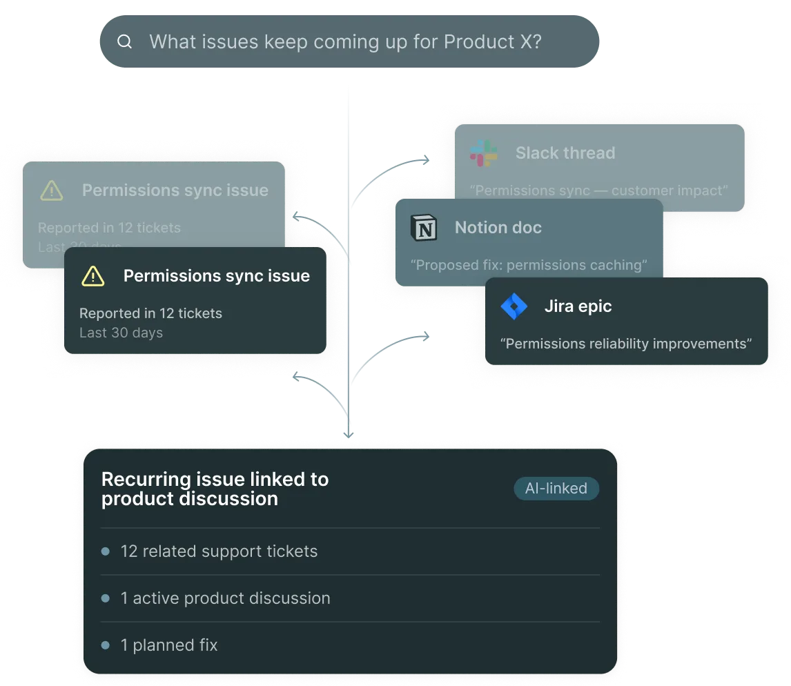 A support trend in Zendesk can surface the engineering thread where the root cause already lives.