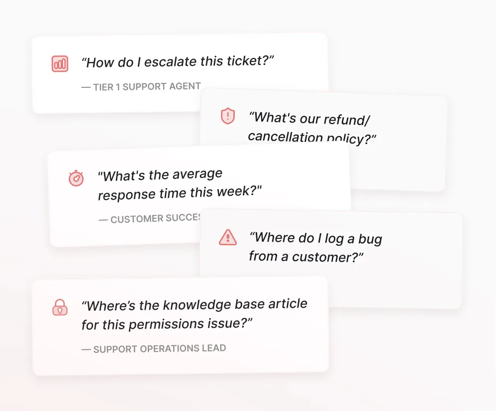 Centralize knowledge across all systems so reps resolve tickets faster and deliver better support with accurate, contextual answers.